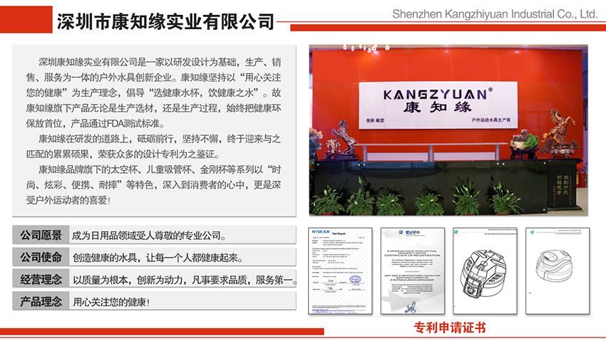 深圳市哲淮实业有限公司是一家以研发设计为基础,专业生产、销售、服务为一体的创新企业。哲淮-用心关注您的健康!以健康为核心,创新户外功能体验思维,独特产品设计及制造技术的开发。让日常生活用品-水杯,更具有运动激情和品质生活。旗下户外水具、太空杯、儿童吸管杯、饮水器具等产品均使用环保材质,通过SGS视频容器检测标准。